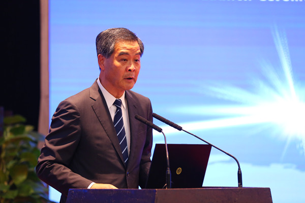 全國政協副主席、中國社會科學院“一帶一路”國際智庫專家委員會名譽主席梁振英致辭。本網記者 張哲 攝