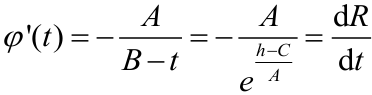 假設: h=φ(t)=Aln(B?t)+C