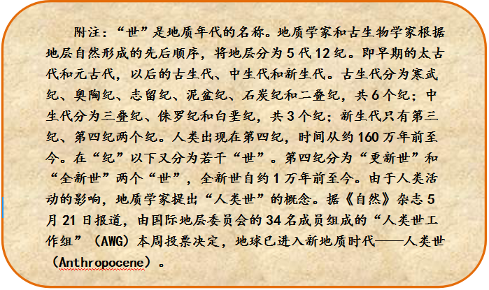 在2000年的一個國際會議上,1995年諾貝爾化學獎得主保羅-克魯岑提出,當今人類活動對自然環(huán)境的影響已經(jīng)超過了自然狀態(tài)的變化,應(yīng)該定義一個新的地質(zhì)時代,叫人類世。我國科學家劉東生院士參加了此會,回國后就極力推薦這個詞。